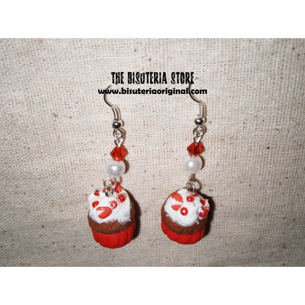 Pendientes con cupcakes de arcilla polimérica con base roja