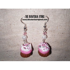 Pendientes cupcake base marrón y cobertura rosa