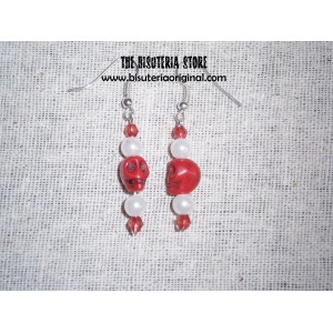 Pendientes calaveras de Howlita rojas y abalorios de cristal y perlas